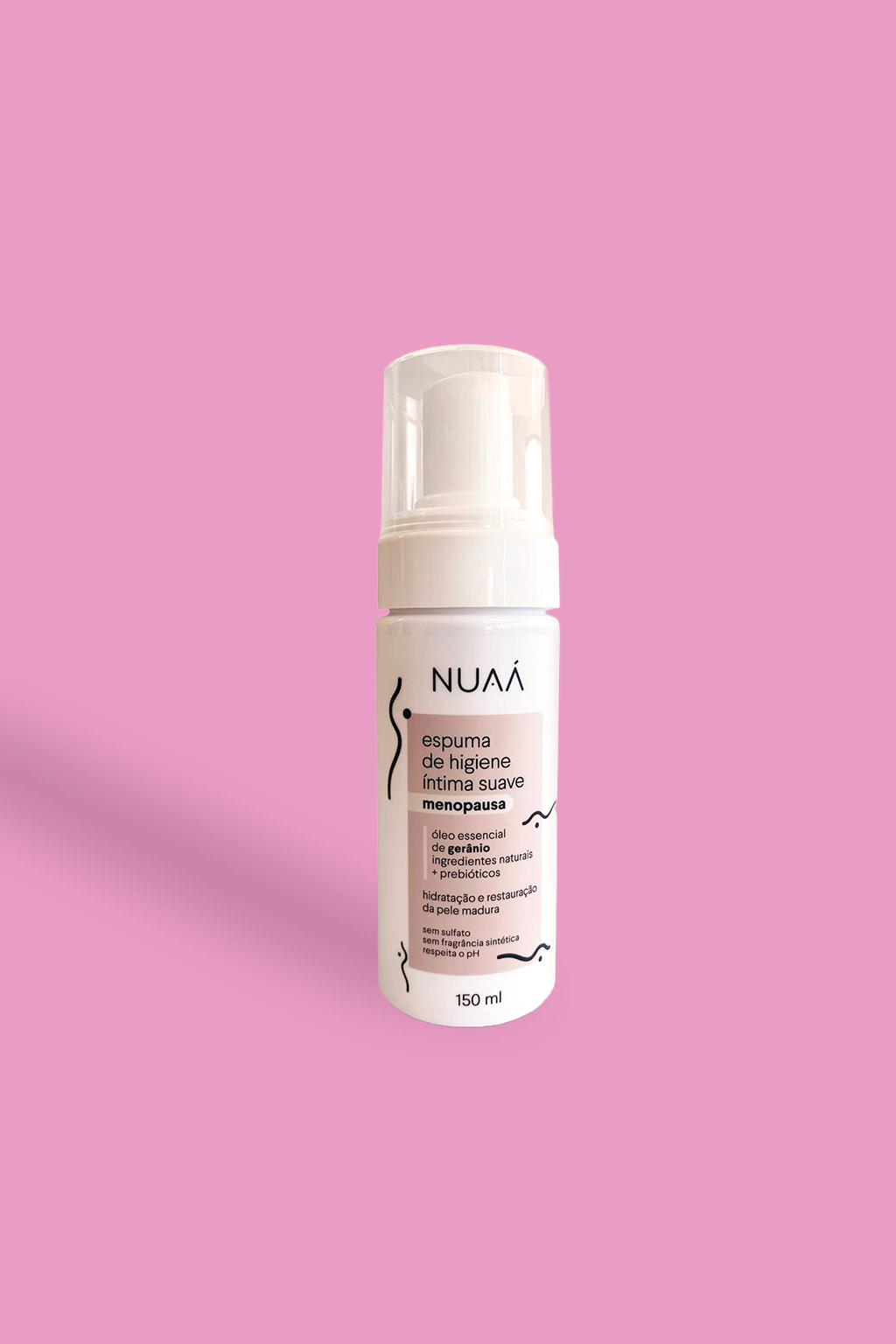 O Sabonete Íntimo em Forma de Espuma Suave Menopausa higieniza, refresca, hidrata e nutre a região íntima durante o banho, já que estimula a produção de colágeno, além de diminuir e evitar manifestações relacionadas às alterações hormonais dessa fase, como o ressecamento, sensação de ardência e fissuras. O efeito aromaterápico fica por conta do óleo essencial de gerânio, que conforta e equilibra o emocional.